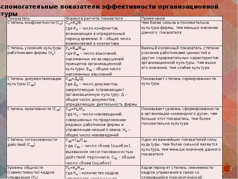 где ЭФОК – показатель эффективности организационной культуры