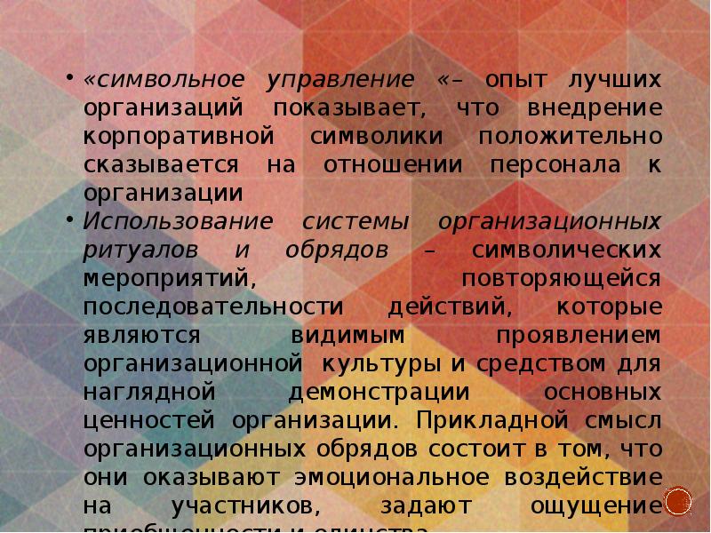 Заявления, призывы, декларации руководства – нельзя забывать, что для закрепления желательных трудовых ценностей и образцов поведения большое значение имеет обращение не только к разуму, но и эмоциям, к лучшим чувствам работников