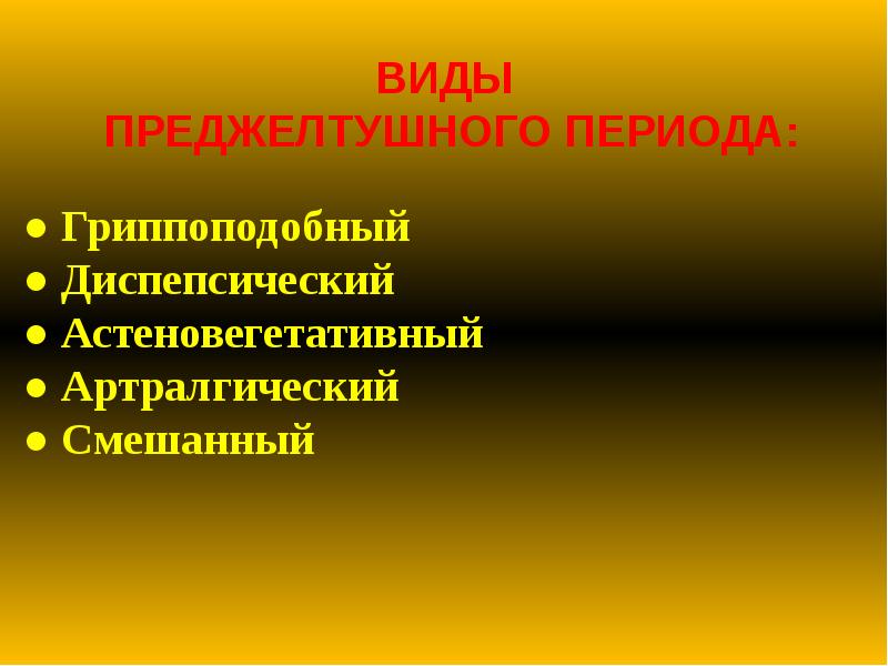 - 12. При ГЕ клинические проявления близки ГА. Преджелтушный период протекает по диспепсическому