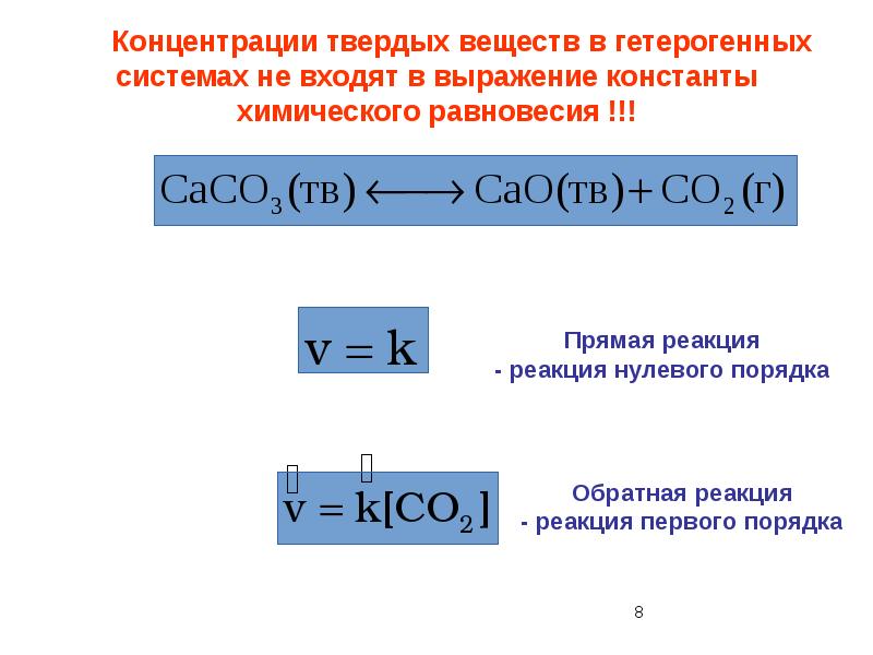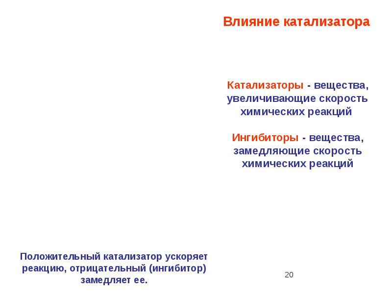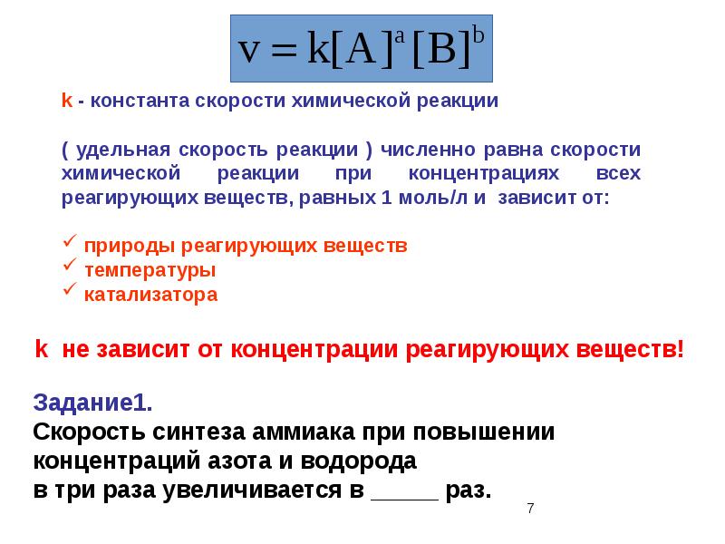 - 42. 7. Константа скорости химической реакции не зависит: от природы реагирующих веществ