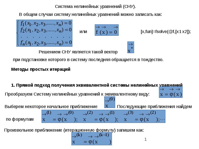 1 Система нелинейных уравнений ( СНУ). В общем случаи систему нелинейных презентация