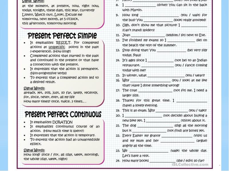 2. Signal words Simple Present Present Progressive Present Perfect Present презентация