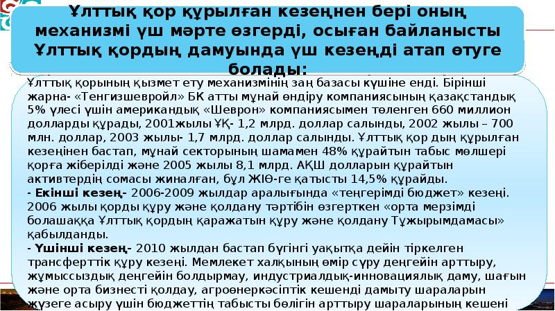 - 4. ҚР Ұлттық қоры «Қазақстан Республикасының Ұлттық қоры туралы» Қазақстан Республикасы Президентінің