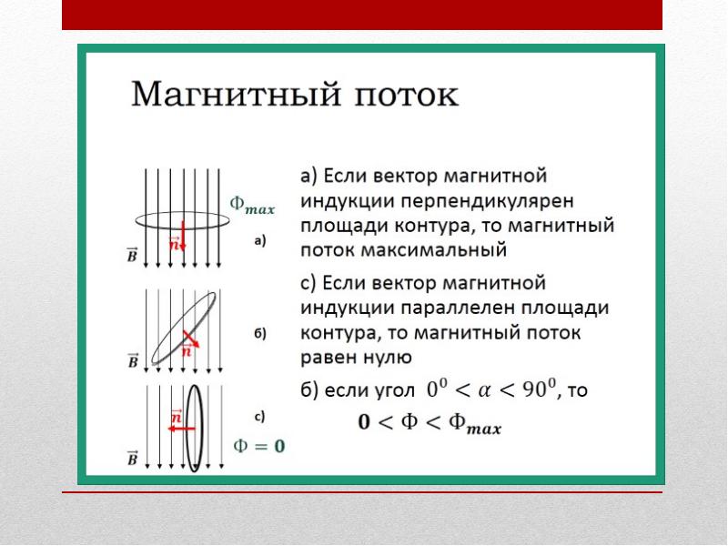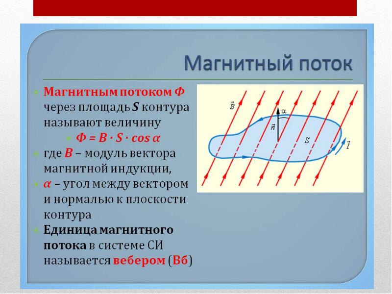 - 112. Вывод: магнитный поток, пронизывающий площадь контура, меняется при изменении модуля вектора