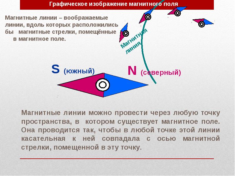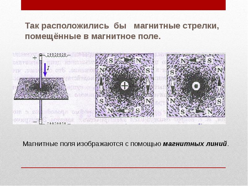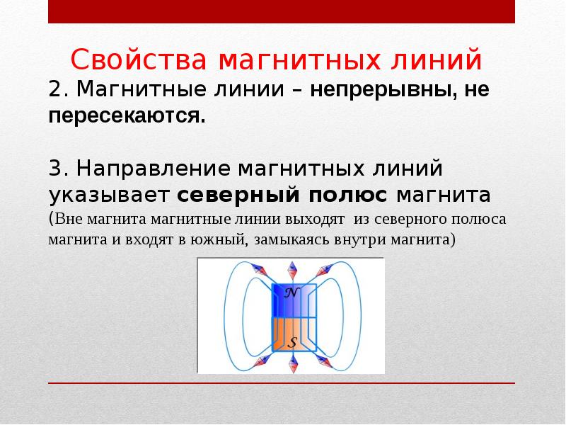 - 43. Мы знаем, что магнитные линии выходят из северного полюса магнита и