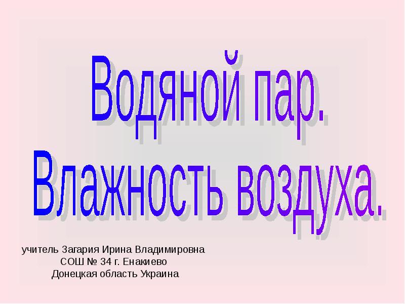 Презентация на тему Водяной пар. Влажность воздуха доступна для скачивания ниже: