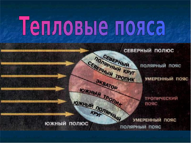 - 2. ЦЕЛИ: 1. Сформировать представление о тепловых поясах Земли и причинах такого