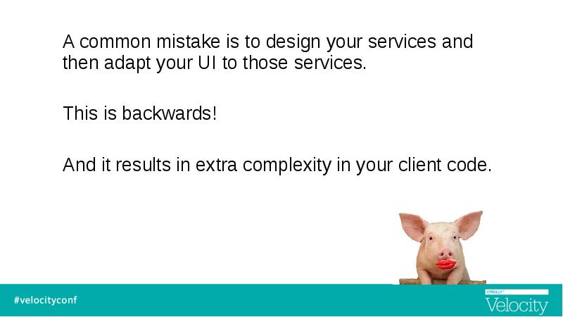 A common mistake is to design your services and then adapt your UI to those services. A common mistake is to design your services and then adapt your UI to those services. This is backwards! And it results in extra complexity in your client code.