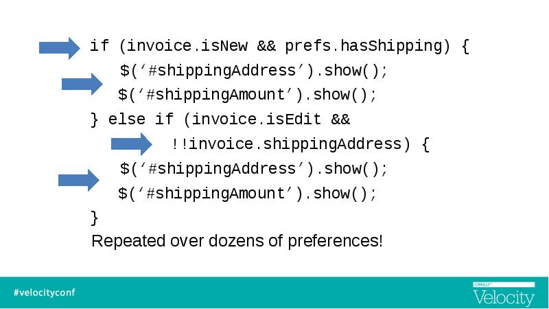 if (invoice.isNew && prefs.hasShipping) { if (invoice.isNew && prefs.hasShipping) { $(‘#shippingAddress’).show(); $(‘#shippingAmount’).show(); } else if (invoice.isEdit && !!invoice.shippingAddress) { $(‘#shippingAddress’).show(); $(‘#shippingAmount’).show(); }