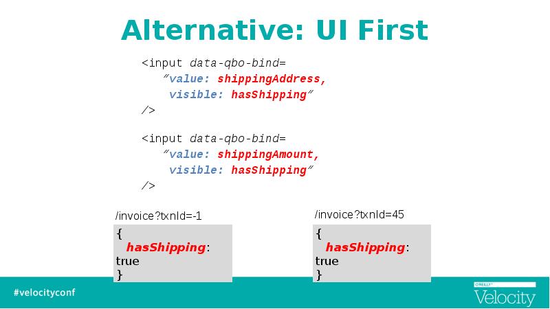 What about two-wayExample: Two-way BindingUI-first ServicesA common mistake is to design your services and then adaptWhat Not to Do: Services Firstif (invoice.isNew && prefs.hasShipping) {