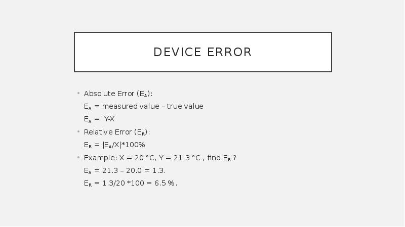 - 11. Device error Absolute Error (EA): EA = measured value – true