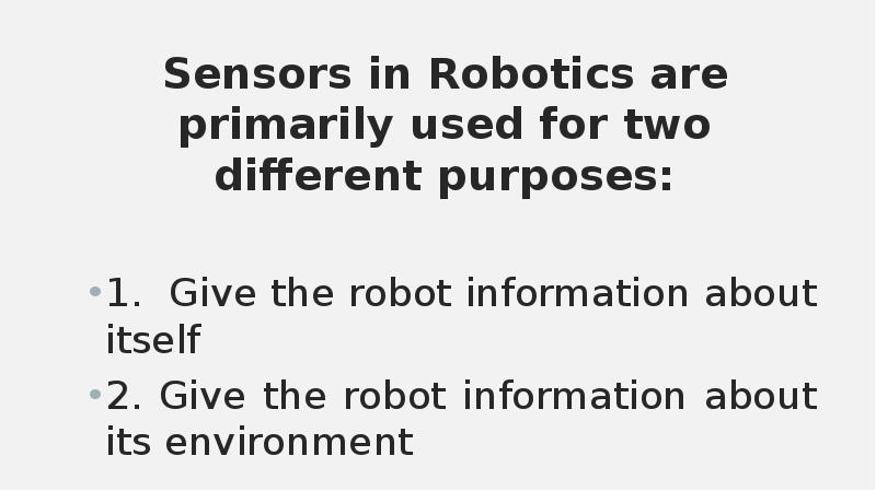 - 3. Sensors in Robotics are primarily used for two different purposes: Sensors