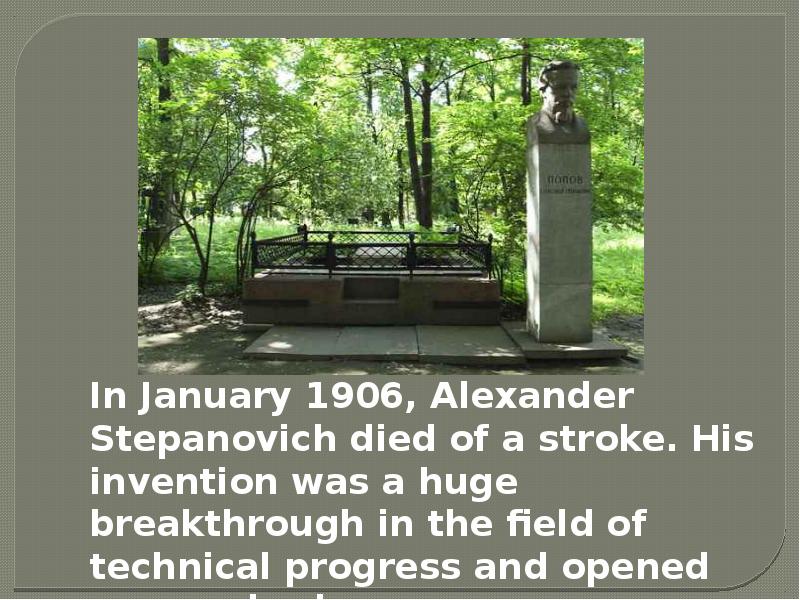 Alexander Stepanovich Popov Presentation of Alexandra Bulyatova, 6 A