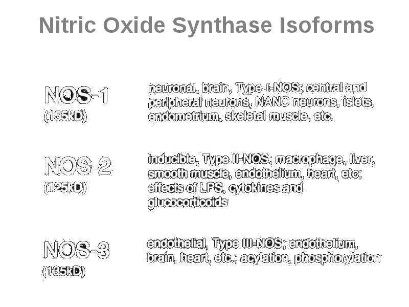 - 15. Types of NOS NOS I Central and peripheral neuronal cells Ca+2