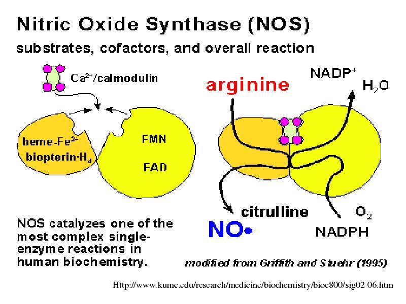 - 13. Synthesis of NO NO is synthesized by nitric oxide synthase (NOS)