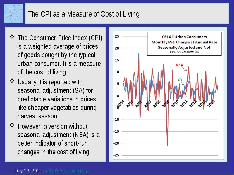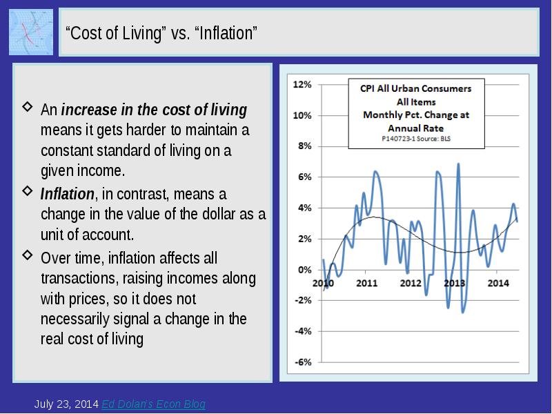 Data for your Classroom from Ed Dolan’s Econ Blog What Does the CPI Measure? Inflation or the Cost of Living? What’s the Difference? July 23, 2014 презентация