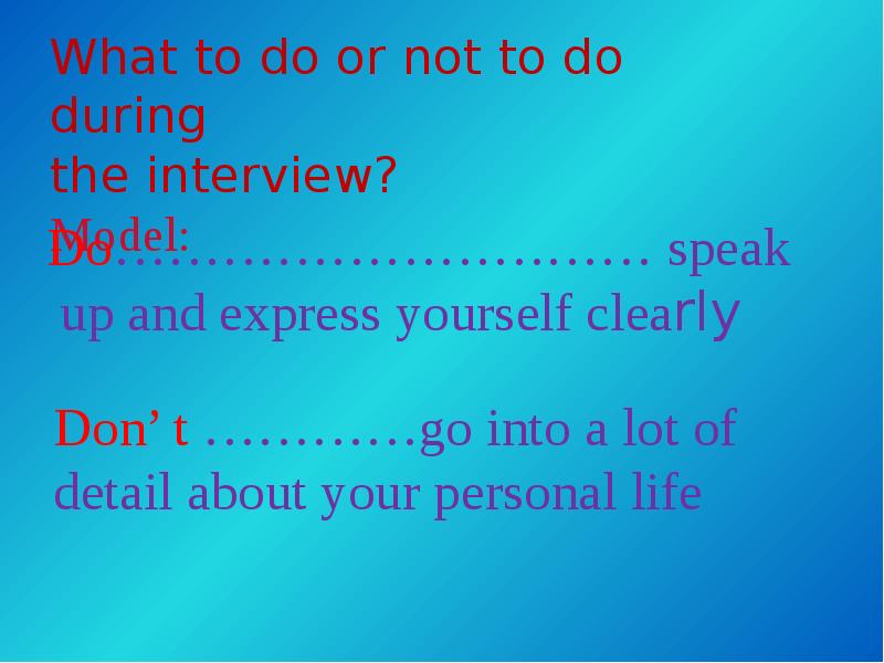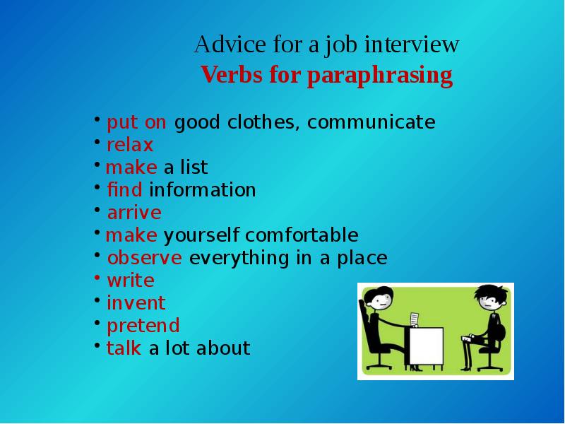 - 7. Role game Interviewee: Think of information about yourself or invent information