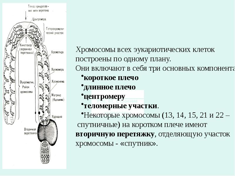 - 21. Центромера делит хромосому на два плеча: Хромосомы с равными плечами
