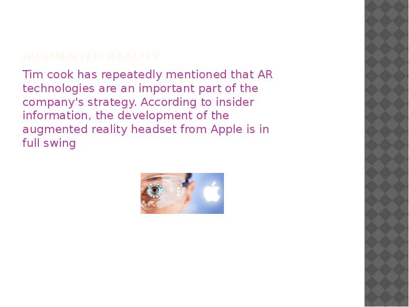 - 6. Augmented reality Tim cook has repeatedly mentioned that AR technologies are