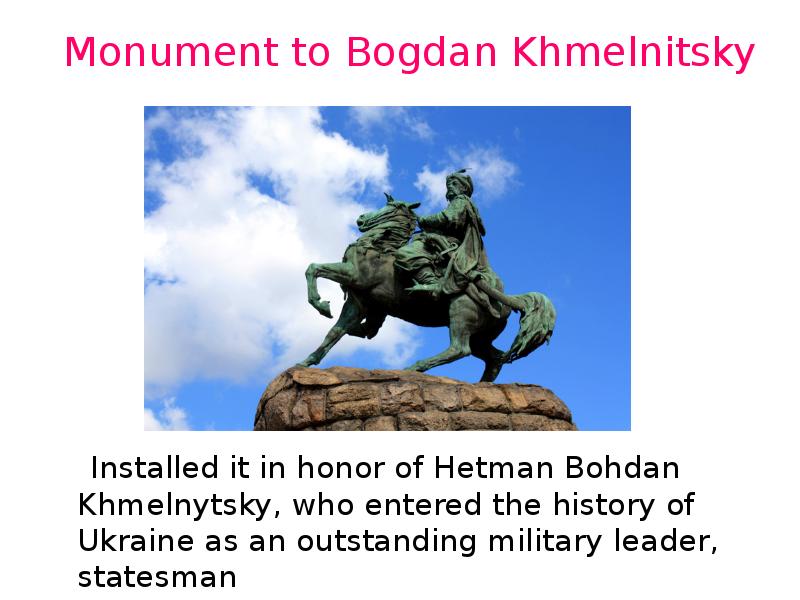 - 6. Monument to Bogdan Khmelnitsky Installed it in honor of Hetman
