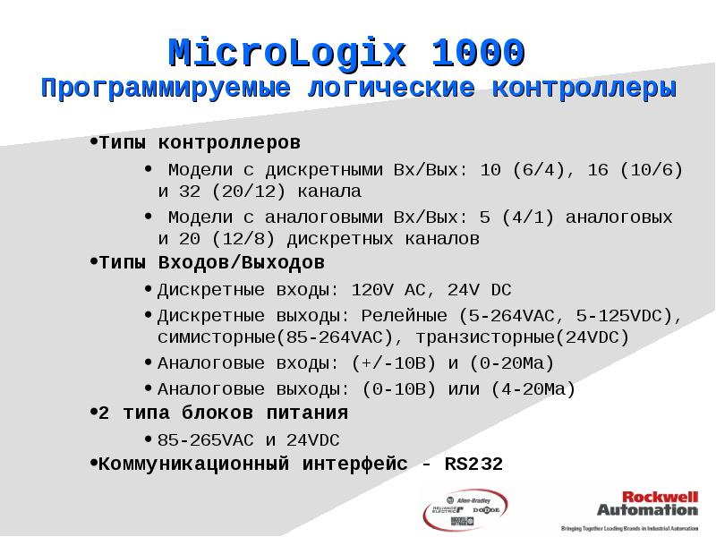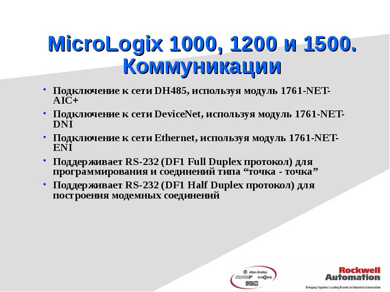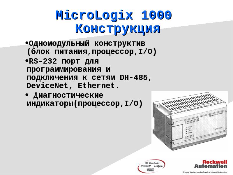 - 13. MicroLogix 1000, 1200 и 1500. Архитектура.
