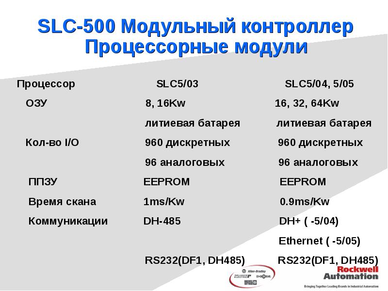 - 17. SLC-500 Модульный контроллер Процессорные модули