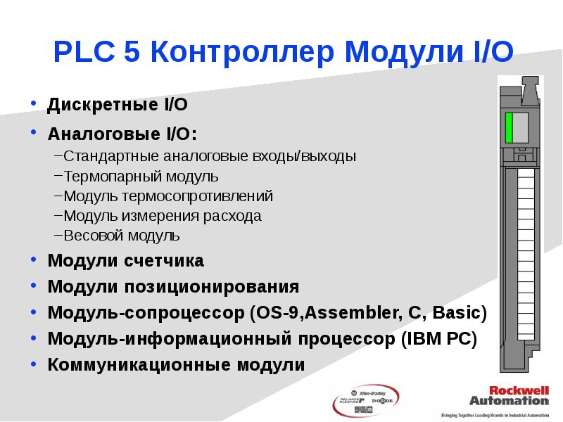 - 27. PLC 5 Контроллер Mодули I/O Дискретные I/O Аналоговые I/O: Стандартные