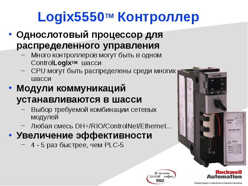 - 32. Logix5550TM Контроллер Однослотовый процессор для распределенного управления Много контроллеров могут быть