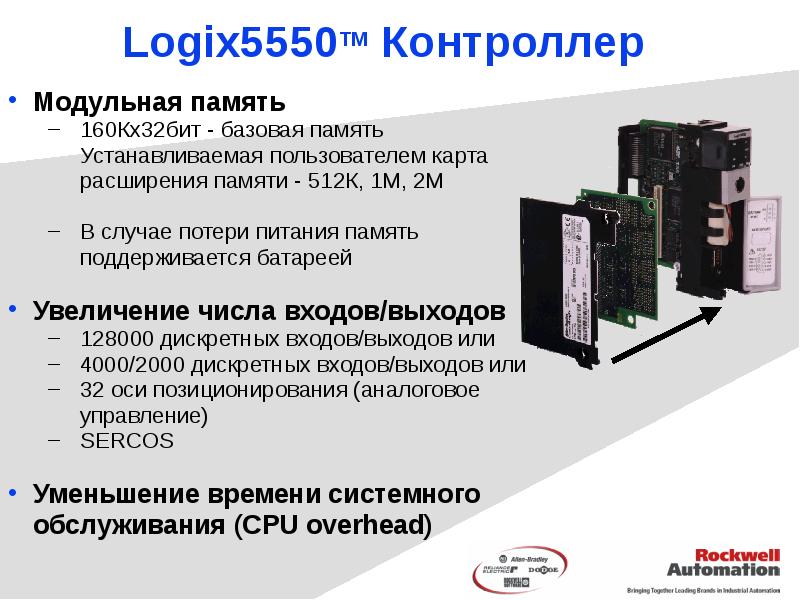 - 33. Logix5550TM Контроллер Модульная память 160Кx32бит - базовая память Устанавливаемая пользователем карта