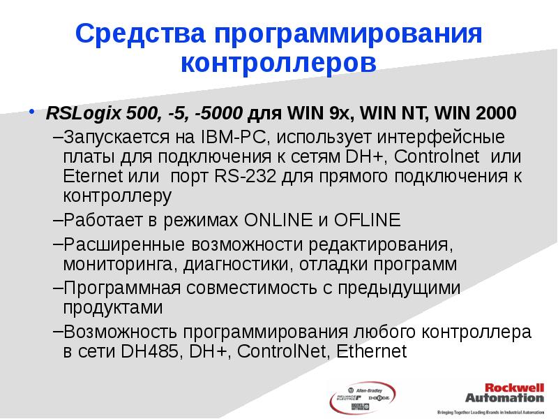 - 36. Средства программирования контроллеров RSLogix 500, -5, -5000 для WIN 9x, WIN