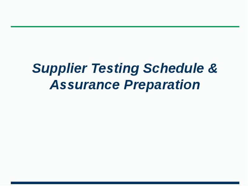 - 20. Testing Schedule & Assurance Preparation Testing schedule for suppliers Major