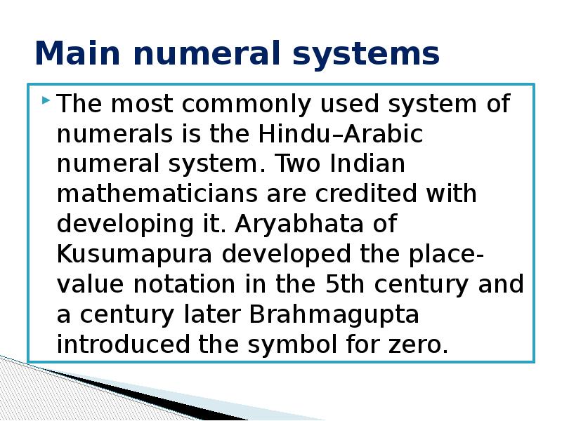 - 4. Main numeral systems The most commonly used system of numerals is