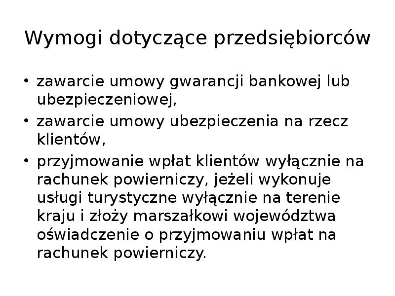 - 15. Wymogi dotyczące przedsiębiorców 1) Zapewnienie klientom, na wypadek swojej niewypłacalności: