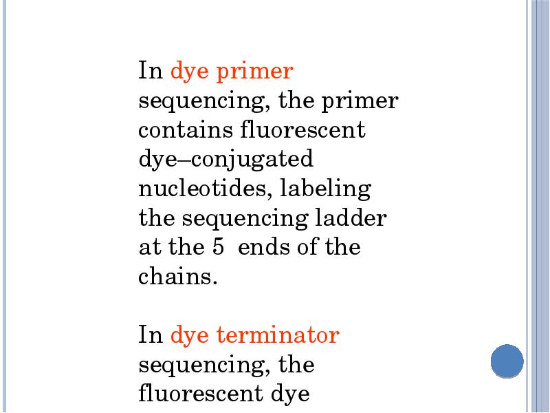 - 19. Automated Sequencing Dye primer or dye terminator sequencing on capillary instruments.