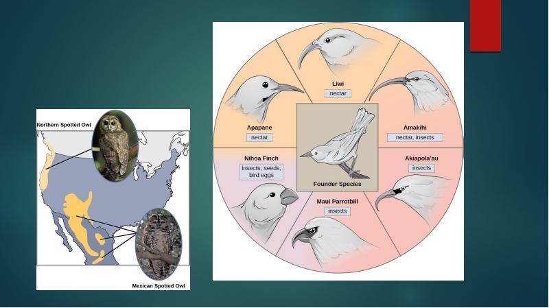 - 14. EXAMPLE OF ALLOPATRIC SPECIATION A major example of allopatric speciation occurred