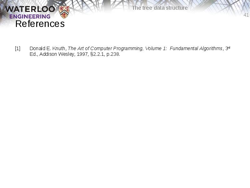 - 41. References [1] Donald E. Knuth, The Art of Computer Programming, Volume 1: