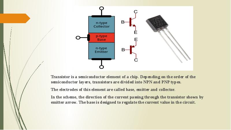 - 2. Transistor is a semiconductor element of a chip. Depending on the