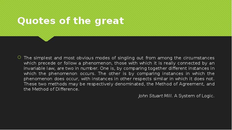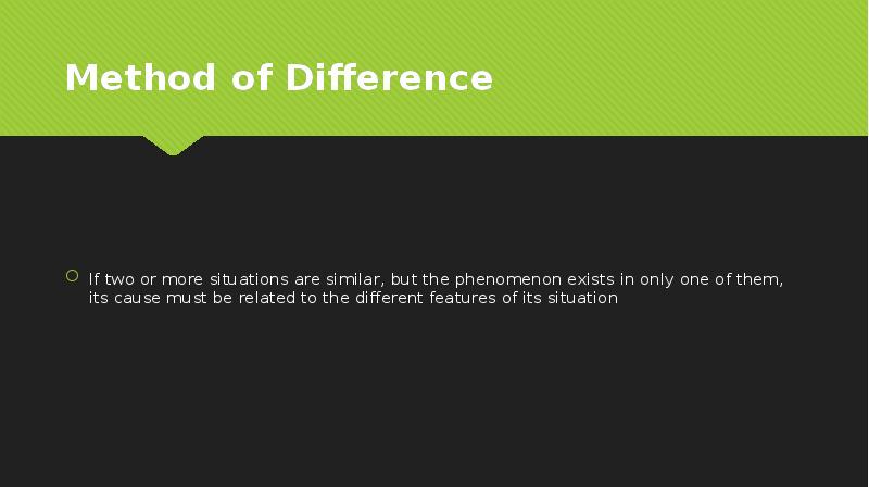 - 13. Method of Difference If two or more situations are similar, but