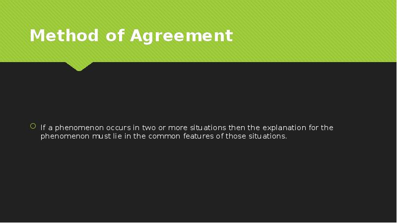 - 12. Method of Agreement If a phenomenon occurs in two or more