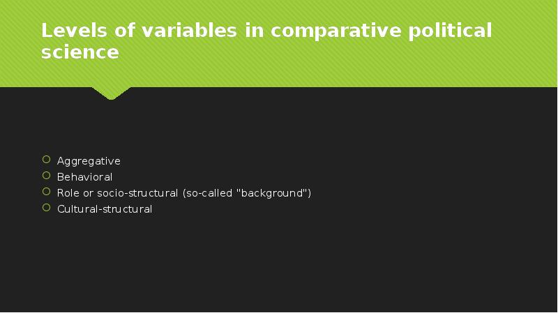 Types and levels of comparative analysis in political science презентация