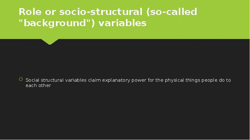 - 18. Role or socio-structural (so-called "background") variables Social structural variables claim explanatory