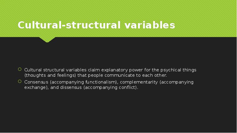 - 19. Cultural-structural variables Cultural structural variables claim explanatory power for the