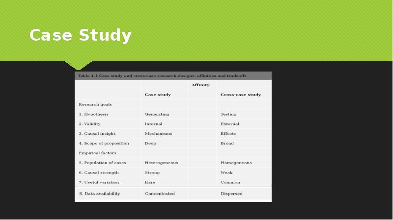 - 10. Comparing Few Cases (small-n comparisons) Small-n studies can include qualitative evidence