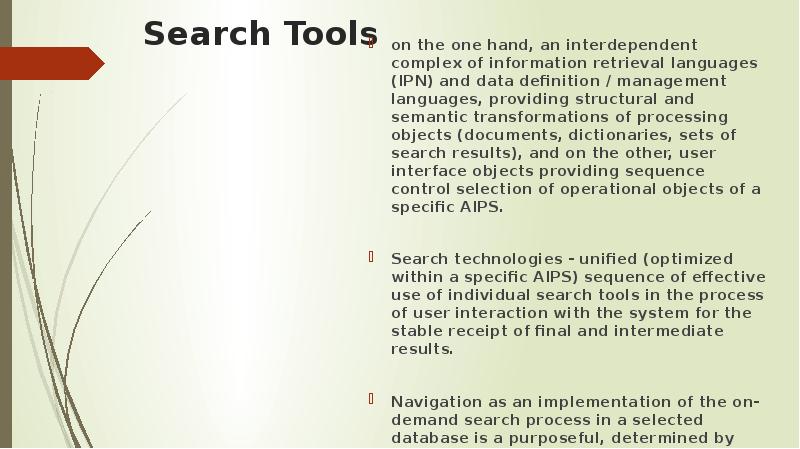 - 9. Search Tools on the one hand, an interdependent complex of information