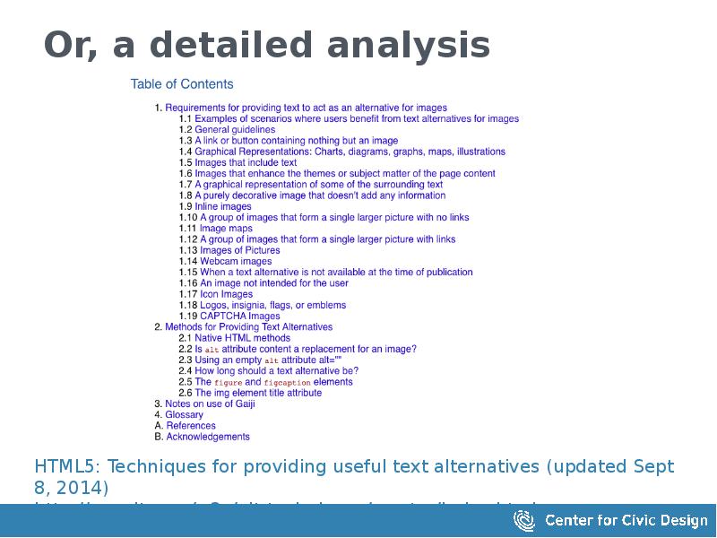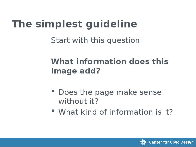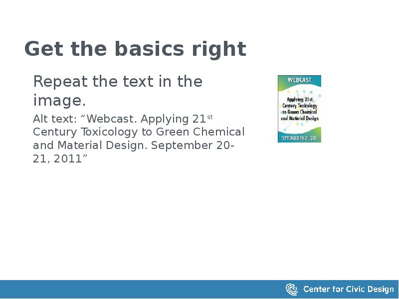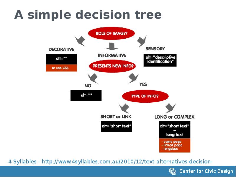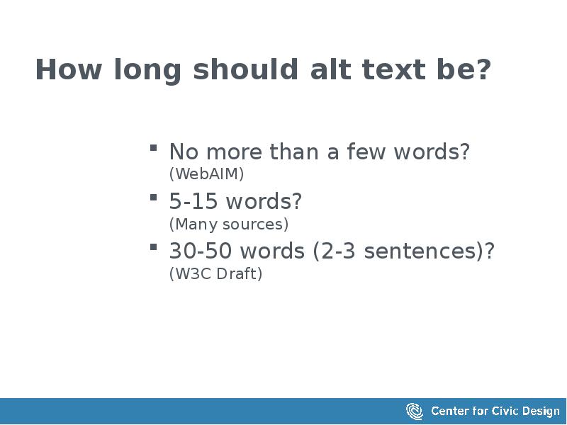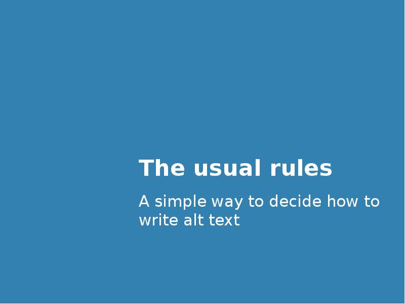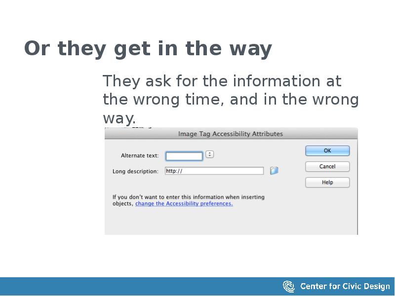 - 11. Is it code or content? Who "owns" the alt text? Developers