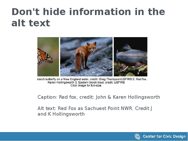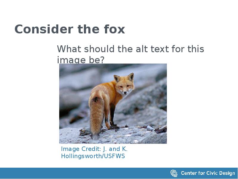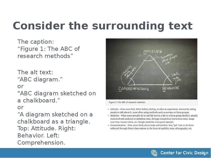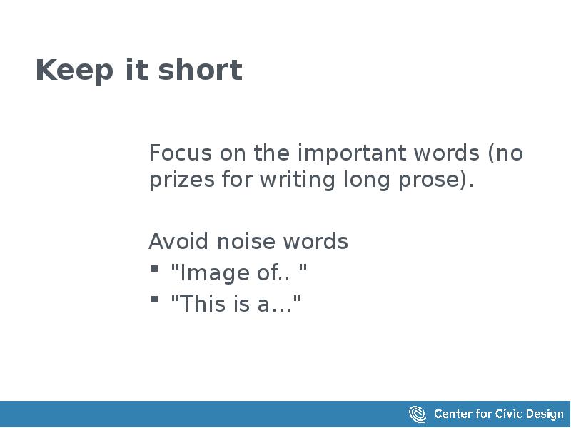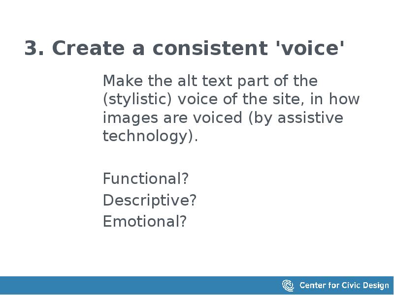 - 23. 3. Create a consistent 'voice' Make the alt text part of