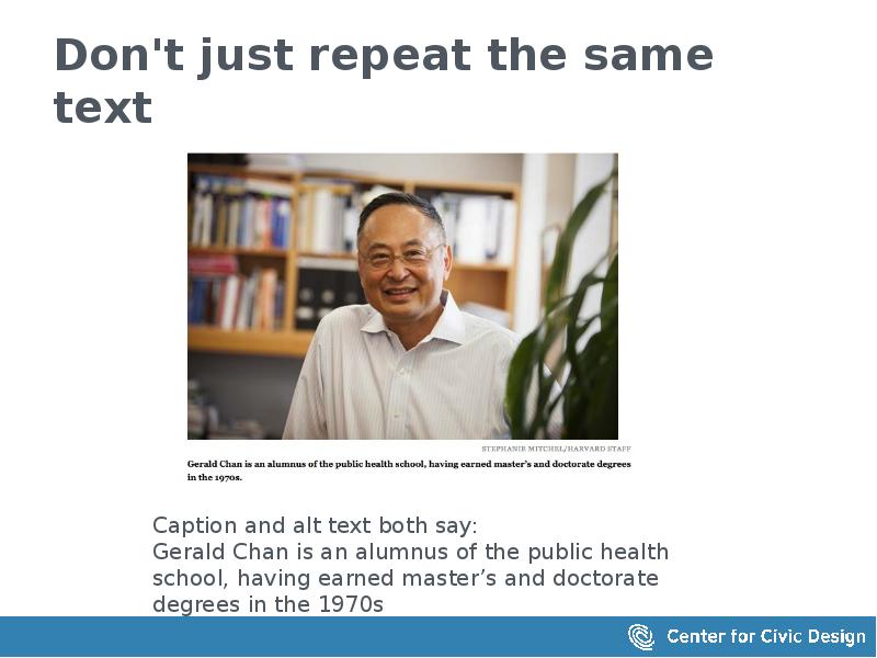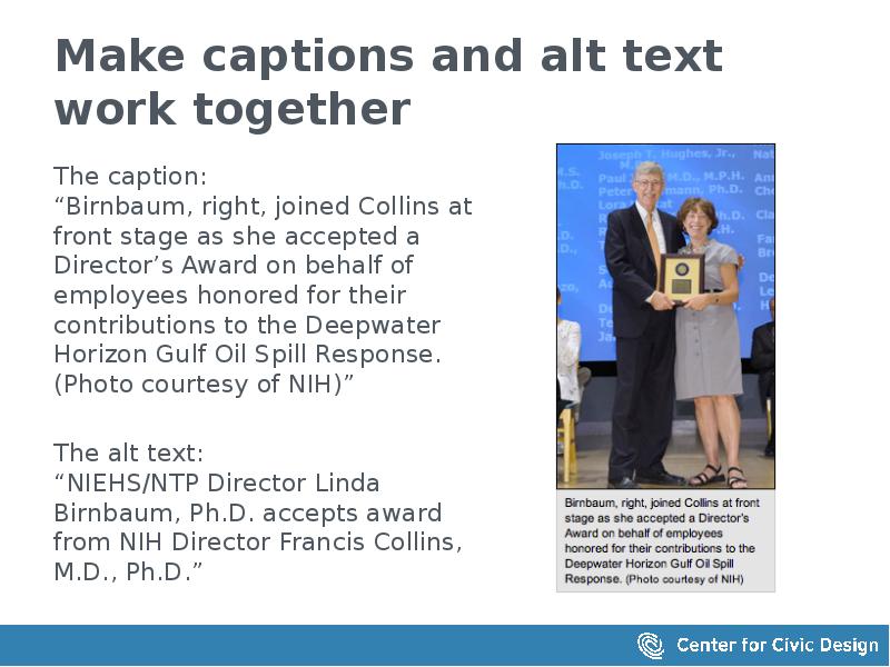 - 32. Make captions and alt text work together The caption: “Birnbaum, right,