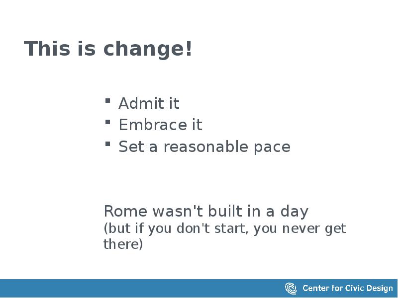 - 44. This is change! Admit it Embrace it Set a reasonable pace