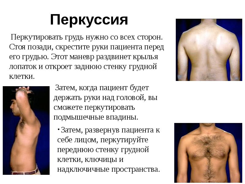 Парадоксальное (дыхание типа “качели”): грудная клетка падает на вдохеПеркуссия