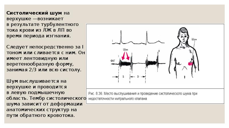 - 36. Диастолический шум на верхушке—начинается после тона (щелчка) открытия митрального клапана (OS).